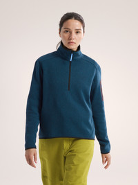 Warm, versatile pullover made from a soft, 100% recycled performance fleece. Cool days on the trail, mornings at camp, supply runs in town – the iconic Coverts provide warmth, soft comfort, and versatile all-mountain performance. Made from 100% recycled polyester, the Alpenex II™ sweater-knit fleece is thermally efficient and has a heathered face that gives it the look of wool. The inside is brushed for added softness. The fit is relaxed, the pullover design rides comfortably under a hipbelt or harness, and the deep front zip provides ventilation and makes pulling it on easy. Crafted at a Fair Trade Certified™ facility as part of our commitment to transition 80% of Arc’teryx products to Fair Trade Certified by 2025. Full Product Features Technical features - Versatile - Warm and comfortable - Midweight warmth Collar configuration - High collar adds warmth Construction - Alpenex II™ Heathered fleece gives efficient thermal performance with improved hand feel Cuff & Sleeves configuration - Long sleeves Patterning - Articulated patterning for unrestricted mobility Pocket configuration - Laminated sleeve pocket with laminated zip Zippers & Fly configuration - Deep front zipper for easy on and off, rapid ventilation Materials - Body: Recycled polyester sweater look fleece, 330gsm - 100% Polyester - Origin of fabric: TAIWAN - Origin of dyeing: TAIWAN - May release plastic microfibres into the environment when washing