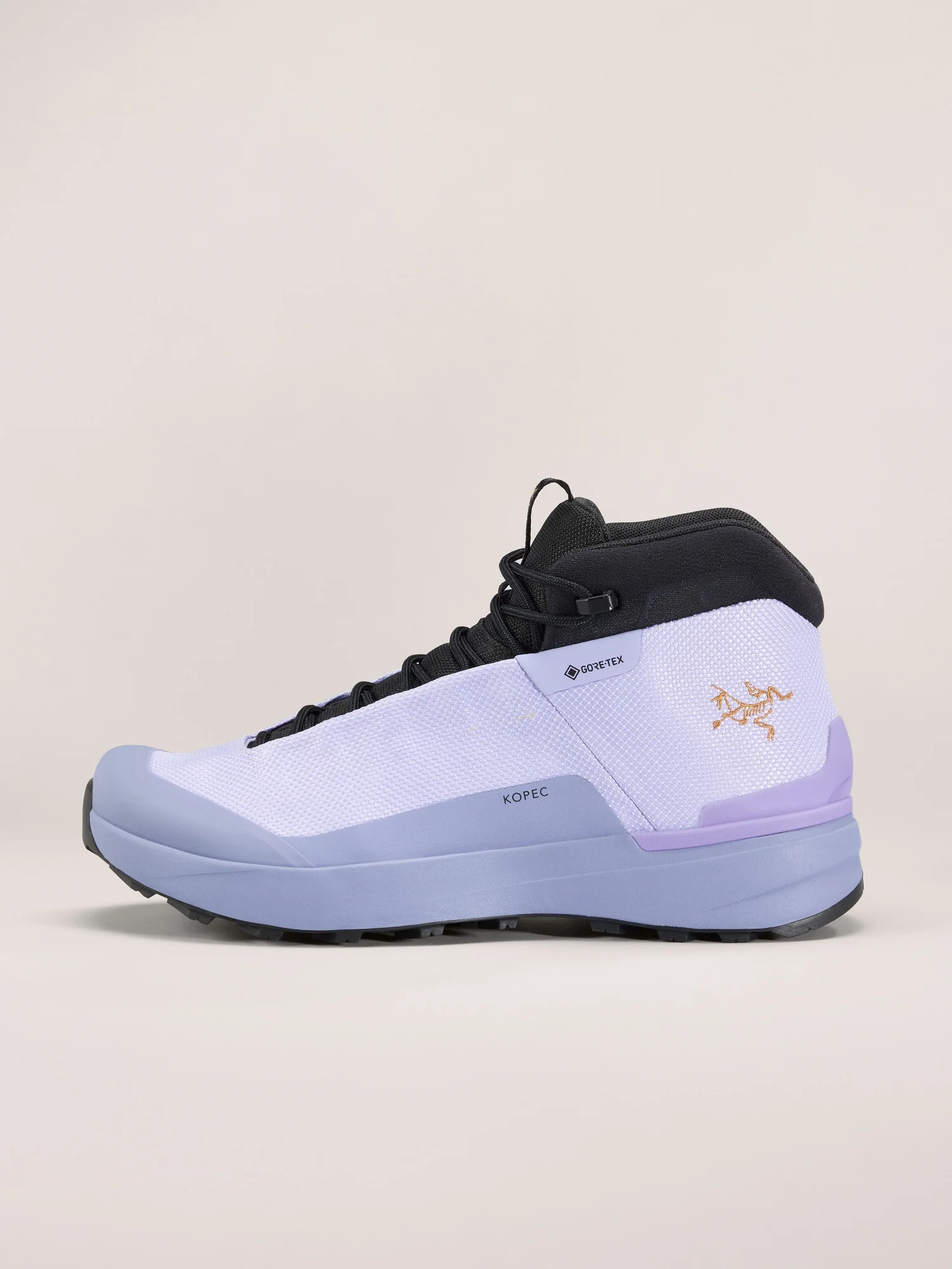 Waterproof mid-height hiking shoe for fast and light travel on shifting terrain. Agile and light, supportive and comfortable – the Kopec Mid GTX is the all-season hiker for confident travel on varied terrain. Made for day hikes and minimalist multiday treks, its PFAS-free GORE-TEX protection seals out water and snow. The CORDURA mesh upper is durable and light, a moulded pad protects your ankle, and the wide toe box gives you room to splay. Cushioning and support come from the dual-density midsole, and the Vibram Megagrip outsole and custom lug pattern deliver a secure grip. Full Product Features Technical features - Waterproof - Breathable - Durable Footwear construction - Articulated Ultralon® 3D moulded collar and tongue combine support and protection with exceptional agility, fit, and freedom - Dual-density midsole material and construction combine cushioning with lasting shock absorption and support for all-day comfort and stability on rugged terrain - Specially designed TPU midfoot shank offers torsional support and underfoot protection for minimal weight - Extended U-throat construction provides more flex, better breathability, greater comfort - Waterproof, breathable GORE-TEX ePE fabric protection with a reduced carbon footprint - Highly durable CORDURA® mesh upper delivers lightweight, breathable, quick-drying performance - Moulded malleolus pad protects the ankle - Roomy toe box accommodates splay and protects toes - Lacing system utilizes integrated webbing with durable metal eyelets at the top to create a secure, supportive, comfortable fit - Asymmetric molded TPU toe cap and reinforcements at high-wear zones add protection and durability - External molded TPU heel counter adds support and protection Footwear geometry - Advanced lug geometry provides precision grip across a range of surfaces, sheds mud, and promotes an easy stride Footwear outsole construction - Vibram® Megagrip outsole with LITEBASE technology delivers durable, surefooted performance across a range of conditions while shedding every gram possible Materials - Lining: Textile - Insole: Textile/Synthetic - Outsole: Rubber