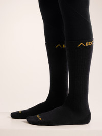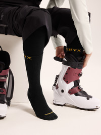 Versatile Merino-blend snow sports sock delivering comfort and technical performance. Freeride, backcountry touring, racking up laps at the resort – this is our performance sock for skiers. The targeted cushioning and performance fit align with your boots for maximum comfort. Shins, toes, and heels are padded, and a grid texture at the shin adds channeled breathability. It’s designed to minimize slip that can cause friction, and arch support is built in. And it’s made with Merino wool, a material known for odour resistance, thermal regulation, and soft comfort. Full Product Features Technical Features - Breathable - Versatile - Light cushioning - Natural merino wool has anti–odour properties - Warm and comfortable Design & Fit - Mid-calf length for warmth and weather protection Logos & Label Configuration - Arc'teryx word logo Sustainability - PFAS (Per- and polyfluoroalkyl substances) Compliant Materials - 48% Merino Wool, 48% Nylon, 4% Elastane