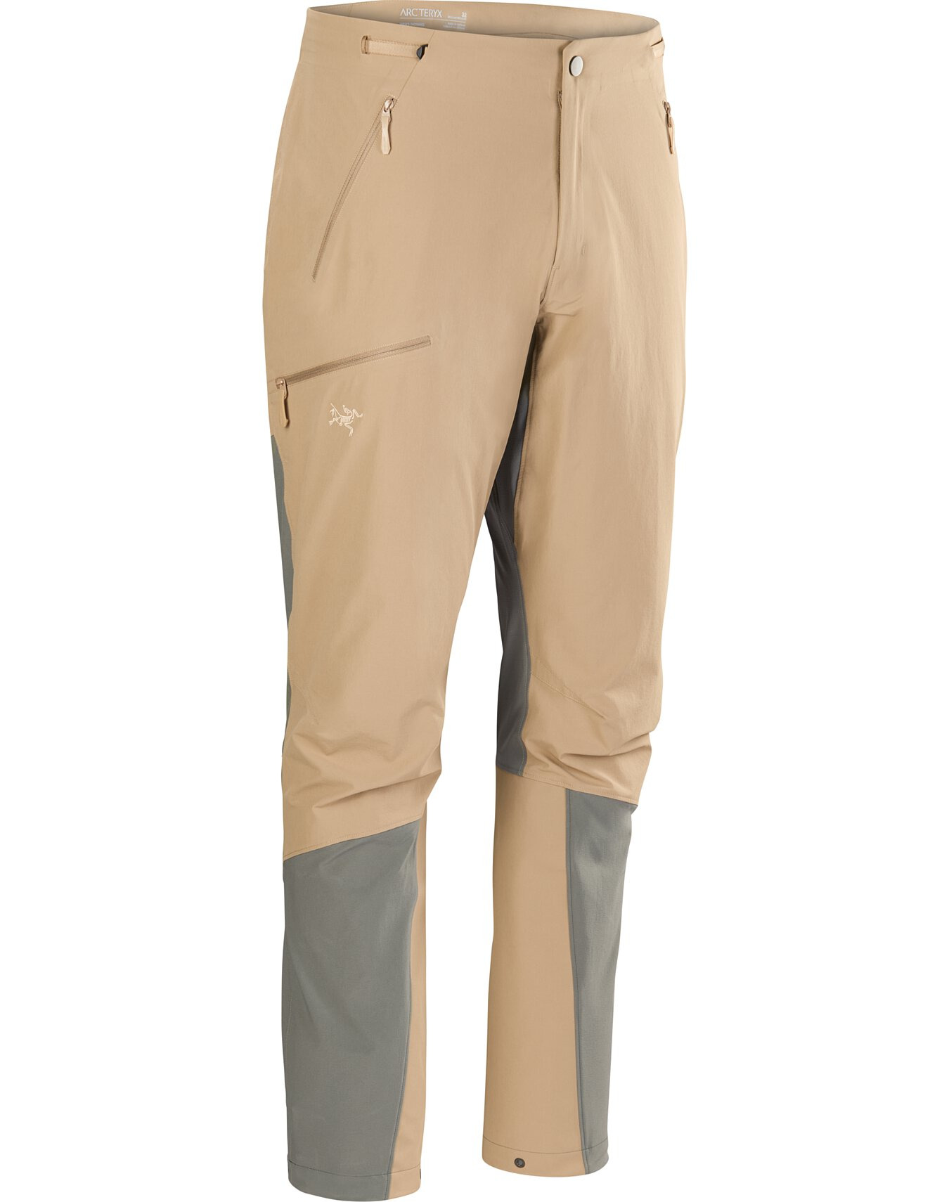 Hybrid softshell climbing pant. Breathable in key zones. Tough everywhere else. Looking to shave weight without sacrificing durability and mobility, we used two kinds of fabric to make these our most technical softshell pant. A durable softshell fabric made with 88% recycled content reinforces areas where climbers rub, drag and brush up against rock the most. Everywhere else, a highly breathable, lightweight fabric helps keep them as light as possible. Full Product Features Technical Features - Weather resistant - Breathable - Lightweight - Durable Construction - Hybrid Mapping technology puts specific fabrics where they are most effective - Lighter-weight Aequora AirPerm™ fabric at the back of the waistband and behind the knees provides exceptional four-way stretch and breathable comfort - Fortius™ DW 2.0 softshell in specific areas provide durability, breathability, weather resistance, and stretch, and is made with recycled content Design & Fit - Garment Inseam: Size 32 is 32"/81cm — Inseam varies by size Fabric Treatment - FC0 DWR (Durable Water Repellent) finish repels moisture and is PFAS-free Patterning - Climb-specific articulated patterning provides mobility and comfort, layers easily Pocket Configuration - Harness friendly zippered hand pockets - Thigh pocket with zip Sustainability - Contains materials that meet the bluesign® criteria - Shell - bluesign® approved material, recycled content - Contrast - bluesign® approved material, recycled content - Lining - bluesign® approved material - PFAS (Per- and polyfluoroalkyl substances) Compliant Waist & Belt Configuration - Integrated low-profile belt with offset buckle and easy-to-use dual adjusters provides a secure fit and comfort under a harness Materials - Contrast: Recycled nylon/spandex stretch plain weave, FC0 DWR, 138 gsm - 86% Nylon, 14% Elastane - Body: RecNylon DBL Weave Solid, 186gsm - 88% Nylon, 12% Elastane - Origin of fabric: TAIWAN - Origin of dying: TAIWAN - May release plastic microfibres into the environment when washing