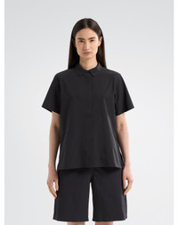 Breathable, comfortable shirt with a relaxed fit and versatile city style. Airy comfort. Refined minimalist aesthetic. The Finial is essential for summer in the city. Air-permeable polyester is soft, light, and made with wicking fibres. Four-way stretch and articulated patterning remove restriction. The laminated stepped hem, taped seams, and hidden snap front give it clean, distinctive style. The fit is relaxed. A pleated back yoke elevates freedom to move. Full Product Features Technical Features - Moisture-wicking - Breathable - Quick-drying - Air permeable Collar Configuration - Standard collar - Hidden snap-front placket for clean, contemporary style Construction - Taped seams for smoother finish - Airy four-way stretch polyester fabric is soft, comfortable, wicks moisture Cuff & Sleeves Configuration - Short sleeves Design & Fit - Relaxed fit for comfort and easy layering - Pleated back yoke for comfort and freedom of movement Hem Configuration - Laminated stepped hem for distinctive style Patterning - Articulated patterning for unrestricted mobility Sustainability - Contains materials that meet the bluesign® criteria Materials - Self: 75d polyester plain weave mechanical stretch, 114gsm - 100% polyester - French Regulation: AGEC Law - Article 13 - Origin of fabric: CHINA - Origin of dying: CHINA - May release plastic microfibres into the environment when washing