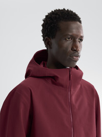 Decisive style in a softshell shell jacket for mixed weather. This product was previously the Isogon MX Jacket. Artful design delivering technical results. Streamlined hooded jacket provides comfort in transitional weather. Burly double-weave softshell material resists wind and light moisture, breathes, stretches for freedom. Adjustable StormHood™ provides coverage without impacting vision. Articulation in the sleeves improve mobility. Hand pockets with hidden zippers for storage that doesn’t disrupt the clean lines. Full Product Features Technical features - Wind resistant - Water resistant Construction - Taped seams for added weatherproofness Cuff & Sleeves configuration - Articulated sleeve with stretch woven panels at cuff for a secure and comfortable fit Design & Fit - Garment Centre Back Length: Size M is 27"/68cm - Varies by size Hem configuration - Adjustable hem draw cord seals out drafts Hood configuration - StormHood™ hidden rear vertical adjustor and brim adjustor webbing pulls Pocket configuration - Two hand pockets with hidden zippers - Two internal zippered pockets Materials - Lining: Nylon/spandex plain weave with DWR, 123gsm - 94% Nylon, 6% Elastane - Body: Burly™ RecNylon Double Weave - 49% Nylon, 42% Polyester, 9% Elastane - Origin of fabric: TAIWAN, CHINA - Origin of dyeing: TAIWAN, CHINA - May release plastic microfibres into the environment when washing