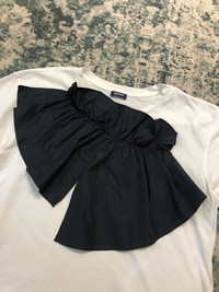 Jil Sander Navy Nylon Ribbon/Ruffle Shirt
