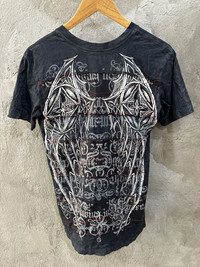 Crazy Y2K Affliction Wings Cyber Grunge Punk White Tee