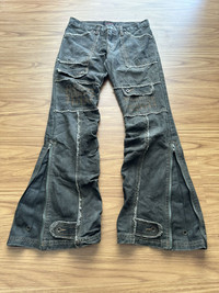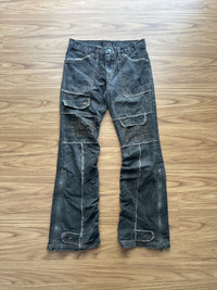 Japanese Brand - 1990-Algonquins Zig Zag & Skull Design Flared Denim Pants