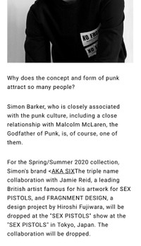 SS20 Fragment Design x Aka Six Simon Barker Seditionaries