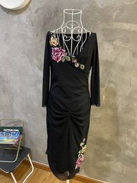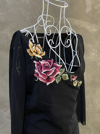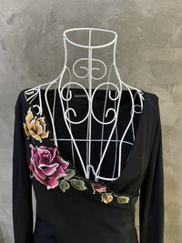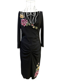 SS98 Vivienne Tam Flower Embroidery Layered Black Dress
