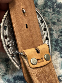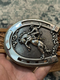 Tony Lama Classic Basketweave Leather Belt Bronc Buckle (32)