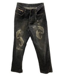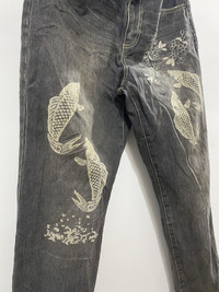 Vintage Karakuri American Rapper Jeans Print Koi Fish