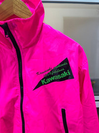 Vintage Kawasaki Luxury Riding Gear Neon Pink Jacket