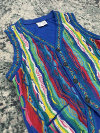 Vtg Coogi Multicolor Sweater Cable Knitted Vest Size Small