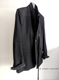 ANN DEMEULEMEESTER :: ALEXANDER 2-BUTTON RIBBON JACKET :: BLACK * BRAND NEW WITH TAGS * TAGGED SIZE 46FR / 50IT / M Shoulders 18" / Pit 20.5" / Back length 32.5" / Sleeve 28" Ann Demeulemeester is widely recognized for delivering modern collections that strike a poetic balance between darkness and light as well as masculinity and femininity. Poetry in motion -- this Alexander jacket is showcased throughout the FW21 lookbook and has been curated from a beautiful wool garbadine Distinctive long black ribbon detailing with silver-tone metal details with an embossed logo Inner strap that can be buttoned to be used as an optional front closure or a carry strap Chest pocket, 2 hand pockets, single rear vent Multiple interior pockets Garbadine comfort 100% Virgin Wool Made in Italy Retails $2,270+ USD -------------------------- 👉Faster shipping options available! @_ardeetee 👉Ships out ASAP 👉Please ignore the grailed US sizing and refer to the designer indicated size and measurements 👉All my items are BRAND NEW unless otherwise indicated 👉NO TRADES, holds, returns/exchanges. Appreciate your understanding!