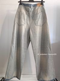 BALENCIAGA :: SS24 BAGGY INSIDE OUT JEANS UNISEX :: LIGHT INDIGO * BRAND NEW W/ TAGS * Balenciaga inside-out construction Cut from vintage-washed cotton denim to a baggy fit with wide leg Front zipper-fly and logo button closure, belt loops, leather logo patch at back waistband Logo-engraved copper tone hardware Exposed seam detailing Balenciaga UNIFIT (Unisex) Ref. 773610-TDW15-4290 Color: Light Indigo Composition: 100% Cotton Made in Italy Retails $1,590+ USD TAGGED SIZE MEDIUM (unisex) Waist 17.5" / F Rise 15.5" / Thigh 14.5" / Hem 11.5" / Inseam 30" -------------------------- 👉Faster shipping options available! @_ardeetee 👉Ships out ASAP 👉Please ignore the grailed US sizing and refer to the designer indicated size and measurements 👉All my items are BRAND NEW unless otherwise indicated 👉NO TRADES, holds, returns/exchanges. Appreciate your understanding!