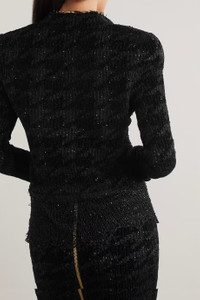 BALMAIN :: SPENCER SEQUIN JACQUARD KNIT JACKET :: BLACK :: $3,495+ * BRAND NEW, NEVER WORN! * Balmain's jacket is sprinkled with sequins that shimmer prettily as they catch the light. Jacquard-knit with a subtle black houndstooth pattern, it has padded shoulders that provide structure and sheer frayed trims at the cuffs and hem. Internal shoulder pads Black jacquard-knit Double-breasted front w/ hook & eye fastening Color: Black Composition: 49% viscose, 31% polyamide, 20% polyester Made in Italy Retails $3,495+ USD TAGGED SIZE 38 Shoulders 16" / Pit 16" / Sleeve 21-26" / Back 31-37" -------------------------- 👉Faster shipping options available! @_ardeetee 👉Purchased items shipped out asap 👉Please refer to the designer indicated size and measurements 👉All my items are BRAND NEW unless otherwise indicated 👉NO TRADES, holds, returns/exchanges. Appreciate your understanding!