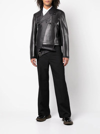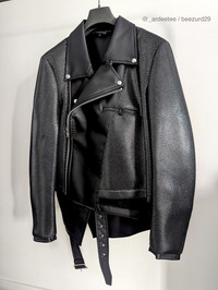 COMME DES GARCONS HOMME :: ASYMMETRIC LAYERED BIKER JACKET :: BLACK * BRAND NEW W/ TAGS * CdG Homme Plus Faux Leather Biker Jacket This moto jacket is designed with a notch lapel collar and asymmetric silhouette. Crafted in faux leather with mesh detail, the biker jacket is finished with a belt at the hem and silvertone hardware. 52% Polyurethane, 48% Polyethylene Style: PH-J008-051-1-4 Color: Black Made in Japan Retails $2,490+ USD TAGGED SIZE LARGE Shoulders 19" / Pit 22" / Sleeve 27" / Back length 22-31" (22" to the mesh layer, 31" to the inner layer) -------------------------- 👉Faster shipping options available! @_ardeetee 👉Ships out ASAP 👉Please refer to the designer indicated size and measurements 👉All my items are BRAND NEW unless otherwise indicated 👉NO TRADES, holds, returns/exchanges. Appreciate your understanding!