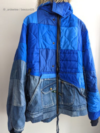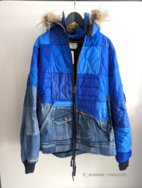 GREG LAUREN :: NYLON SCRAPWORK 50/50 RETRO PUFFY JACKET :: BLUE/DENIM * BRAND NEW WITH TAGS * Greg Lauren Scrapwork 50/50 Retro Puffy Jacket w/ Fur Hood Patchwork material body with a removable hood, heavy distressed cotton cuffs and a 2 way zip closure. Front pockets, 2 zippered and 2 hand pockets, thermal lined hood. Ref. AM252 Color: Blue Patchwork Made in USA Retails $3,750 USD TAGGED SIZE 4 Shoulders 20" / Pit 27" / Back 28.5" / Sleeve 28.5" -------------------------- 👉Faster shipping options available! @_ardeetee 👉Purchased items shipped out asap 👉Please refer to the designer indicated size and measurements 👉All my items are BRAND NEW unless otherwise indicated 👉NO TRADES, holds, returns/exchanges. Appreciate your understanding!