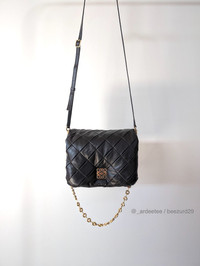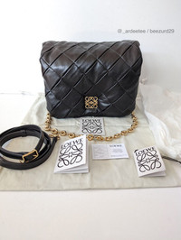 LOEWE :: PUFFER GOYA PLEATED LEATHER LAMBSKIN :: BLACK * BRAND NEW W/ TAGS AND DUSTBAG * Loewe's Goya Puffer shoulder bag sees an iconic house style achieve new dimension. Made from lamb leather with matelasse quilting, the compact design is padded and accented with golden Anagram hardware and a removable chain strap and adjustable leather strap. This version is in pleated lambskin that is cut, sewn, and then woven by hand. Ref: A896P41X14 Shoulder or clutch carry Magnetic closure This bag comes with one detachable chain and one leather strap One main compartment, one zipped pocket and one slip pocket Lined in nappa lambskin, padded with goose down Made in Spain Retails $4,700+ USD Measures approx. Width 9.5" / Height 7.5" / Depth 4" -------------------------- 👉Faster shipping options available! @_ardeetee 👉Purchased items shipped out asap 👉Please refer to the designer indicated size and measurements 👉All my items are BRAND NEW unless otherwise indicated 👉NO TRADES, holds, returns/exchanges. Appreciate your understanding!