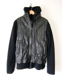 SHELLAC :: COMBO LEATHER/HOODIE JACKET :: BLACK * BRAND NEW, UNWORN * Incredible 2-in-1 hoodie with a heavy sheepskin leather vest. Hoodie and vest can be worn separately or together. Polyester fur lined hoodie with a heavy sheepskin leather vest. Color is overall black with some hints of brown in the leather. Riri 2-way zippers. Made in Japan. TAGGED SIZE 48 Shoulders 16" / Pit 19" / Back length 25" (28" including hoodie) -------------------------------- 👉Faster shipping options available! @_ardeetee 👉Ships out ASAP 👉Please ignore the grailed US sizing and refer to the designer indicated size and measurements 👉All my items are BRAND NEW unless otherwise indicated 👉NO TRADES, holds, returns/exchanges. Appreciate your understanding!