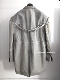 RICK OWENS :: RARE 1/1 SAMPLE EDFU TATLIN RIPSTOP COAT :: PEARL * BRAND NEW W/ TAGS * RARE 1/1 SAMPLE 'TRANSTATLIN COAT' from the rickowens.eu SS23 product guide "THE GRAPHIC RIPSTOP - IN A SOFT COLOR WITH GENTLE, BUT DECIDEDLY GEOMETRIC LINES GOING THROUGH IT... I THINK THERE IS A SEARCH FOR ORDER IN A CHAOTIC WORLD IN THAT PARTICULAR GARMENT" --RICK OWENS 0-0-0 code on tag Nylon ripstop, check pattern throughout Concealed drawstring at interior to further adjust the silhouette Peaked lapel, button closure, welt pockets Padded shoulders, five-button surgeons cuffs Press-release webbing strap at back yoke Central vent at back hem Zip pockets at interior Item RU01C4701-RGNM Color: Pearl Body: 100% Polyamide. Lining 1: 100% organic cotton. Lining 2: 100% cupro. Made in Italy. TAGGED SIZE 48 EU Shoulders 24" / Pit 23.5" / Sleeve 26" / Back length 38" -------------------------- 👉Faster shipping options available! @_ardeetee 👉Ships out ASAP 👉Please refer to the designer indicated size and measurements 👉All my items are BRAND NEW unless otherwise indicated 👉NO TRADES, holds, returns/exchanges. Appreciate your understanding!