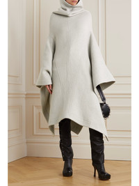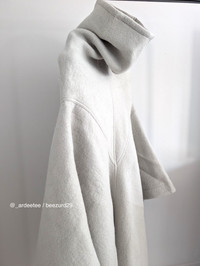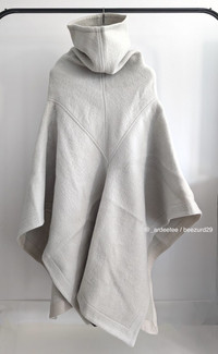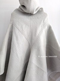 RICK OWENS :: FW22 WOOL/ALPACA COWL NECK PONCHO COAT :: PEARL * BRAND NEW W/ TAGS * Mid-length cowl woven coat/cape with panelled design, draped detailing, handkerchief hem Constructed from a cozy wool and alpaca-blend and an oversized funnel neck Fits large to size, take one size smaller than normal Designed for a draped silhouette, cut to be worn loose Weighted, non-stretchy fabric Runway photo showing structure/color of the beautiful cowl neck Art. RO02B6964-WF Color: Pearl Composition: 60% Wool, 40% Alpaca Made in Italy Retails $2,590+ USD TAGGED SIZE 42 IT / 10 GB / 6 US Measures 20" across the dropped shoulders (seam to seam) -------------------------- 👉Faster shipping options available! @_ardeetee 👉Ships out ASAP 👉Please refer to the designer indicated size and measurements 👉All my items are BRAND NEW unless otherwise indicated 👉NO TRADES, holds, returns/exchanges. Appreciate your understanding!
