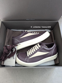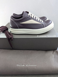 RICK OWENS :: FW23 LUXOR LEATHER VINTAGE/VANS SNEAKERS :: AMETHYST * BRAND NEW W/ DUSTBAG, BOX, EXTRA LACES * Highly sought after Vintage Sneakers from the Rick Owens Luxor FW23 collection Beautiful and elegant purple 'Amethyst' color Leather upper, eight eyelets with laces, shark tooth sole Item RP02C1888-LCGLVS Color: Amethyst/Milk Made in Italy Retails $1,000+ USD TAGGED SIZE 37 EU Insole ~9.75" -------------------------- 👉Faster shipping options available! @_ardeetee 👉Purchased items shipped out asap 👉Please refer to the designer indicated size and measurements 👉All my items are BRAND NEW unless otherwise indicated 👉NO TRADES, holds, returns/exchanges. Appreciate your understanding!