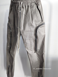 RICK OWENS :: SS21 PHLEGETHON BAUHAUS CARGO JOGGERS :: DUST * BRAND NEW, NEVER WORN * Bauhaus Cargo from Phlegethon SS21 Crafted from a 93% cotton / 3% elastane Certified organic cotton Calf leather pull tabs RP21S3327-TE Color 34 DUST Made in Italy Retails $1,235 USD TAGGED SIZE 40 IT (fits like a men's 46/small) Waist 14" (elastic) / F Rise 12" / Thigh 11.5" / Hem 5" / Inseam 27" -------------------------- 👉Faster shipping options available! @_ardeetee 👉Purchased items shipped out asap 👉Please refer to the designer indicated size and measurements 👉All my items are BRAND NEW unless otherwise indicated 👉NO TRADES, holds, returns/exchanges. Appreciate your understanding!