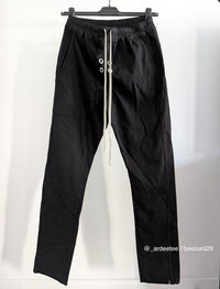 RICK OWENS DRKSHDW :: MEDIUM-WEIGHT (RIG) COTTON GIMP/EYELET DRAWSTRING PANTS :: BLACK * BRAND NEW, NEVER WORN! * DRKSHDW Berlin Drawstring Lounge Pants Crafted from the label's signature medium weight organic cotton-jersey 4-eyelets on the front Elasticated drawstring waist, four pockets Item: DU02C5359-RIGES1 Color: Black Composition: 100% Organic Cotton; Lining: 97% Cotton, 3% Elastane Made in Italy Retails $830+ USD TAGGED SIZE LARGE Waist 17" / F Rise 13.5" / Thigh 12.5" / Inseam 32" / Hem 7.5" -------------------------- 👉Faster shipping options available! @_ardeetee 👉Purchased items shipped out asap 👉Please refer to the designer indicated size and measurements 👉All my items are BRAND NEW unless otherwise indicated 👉NO TRADES, holds, returns/exchanges. Appreciate your understanding!