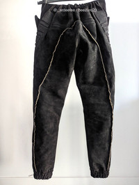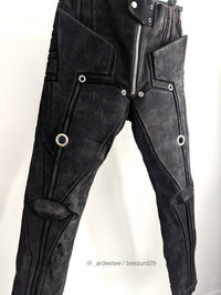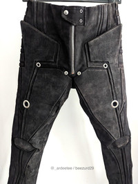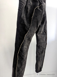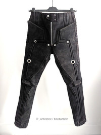RICK OWENS :: RARE FW22 METROJOGGER HEAVY REVERSED LEATHER :: BLACK/DARK DUST * BRAND NEW W/ TAGS * Rare sample Metrojoggers from Rick Owens FW22 LEATHER ARMOR. Constructed using a beautiful HEAVY WEIGHT reversed goat leather with incredible worksmanship/detailing throughout Elasticated waistband w/ snap button Elastic/jogger hem with heavy zip Contrasting raised rear seam Item RR02B2305/LCC Color: Black (actual color is a very dark brown/dust) Made in Italy TAGGED SIZE 48 Waist 13-16" (elastic) / F Rise 11.5" / Thigh 11.5" / Inseam 30" / Hem 5.5" -------------------------- 👉Faster shipping options available! @_ardeetee 👉Ships out ASAP 👉Please refer to the designer indicated size and measurements 👉All my items are BRAND NEW unless otherwise indicated 👉NO TRADES, holds, returns/exchanges. Appreciate your understanding!