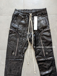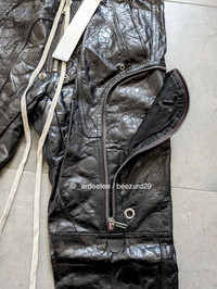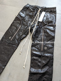 RICK OWENS :: PERFORMA ACID LAMB LEATHER TECUATL BAUHAUS CARGOS :: BLACK * BRAND NEW WITH TAGS * Incredibly rare leather Tecuatl Bikers from FW20 Performa 100% acid black lamb leather, only a couple pairs in specific sizes were made. Only seen previously in 1 other size (already sold) Crafted from beautiful 100% textured lamb leather, fully lined in 100% cotton. RO20F2357-LZ / Black Made in Italy TAGGED SIZE 40 EU (fits a mens 46-48) Unisex, every measurement is nearly identical to the 48 I had previously Waist 15" / F Rise 12.5" / Thigh 11" / Hem 5.5" / Inseam 27.5" -------------------------- 👉Faster shipping options available! @_ardeetee 👉Ships out ASAP 👉Please ignore the grailed US sizing and refer to the designer indicated size and measurements 👉All my items are BRAND NEW unless otherwise indicated 👉NO TRADES, holds, returns/exchanges. Appreciate your understanding!