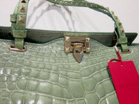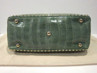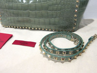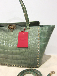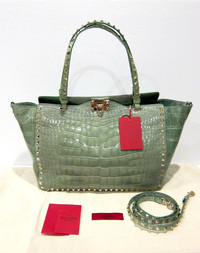 VALENTINO GARAVANI :: CROCODILE ROCKSTUD TRAPEZE TOTE :: MSRP $16,300 USD * BRAND NEW W/ TAGS AND DUSTBAG * Valentino's exquisitely crafted Rockstud tote in the ultimate glossy mint crocodile. Elegantly enhanced with the brand's signature polished gold-tone hardware. Spacious and supple leather lined interior with a zip pocket and 2 additional pockets. Matching detachable studded shoulder strap. Flip-lock fastening tab at open top. Protective metal feet on bottom. Crocodile: USA Made in Italy. Retail $16,300 USD Original Valentino dust bag included. Measurements: Length across top: 20" Bottom: 13" W, 5.5" D Height: 10" Handle drop: 7.5" Shoulder drop: 19" ------------------------------------ 👉Faster shipping options available! @_ardeetee 👉Purchased items will be shipped out asap 👉Please ignore the grailed US sizing and refer to the designer indicated size and measurements 👉All my items are BRAND NEW unless otherwise indicated 👉NO TRADES, holds, returns/exchanges. Appreciate your understanding!