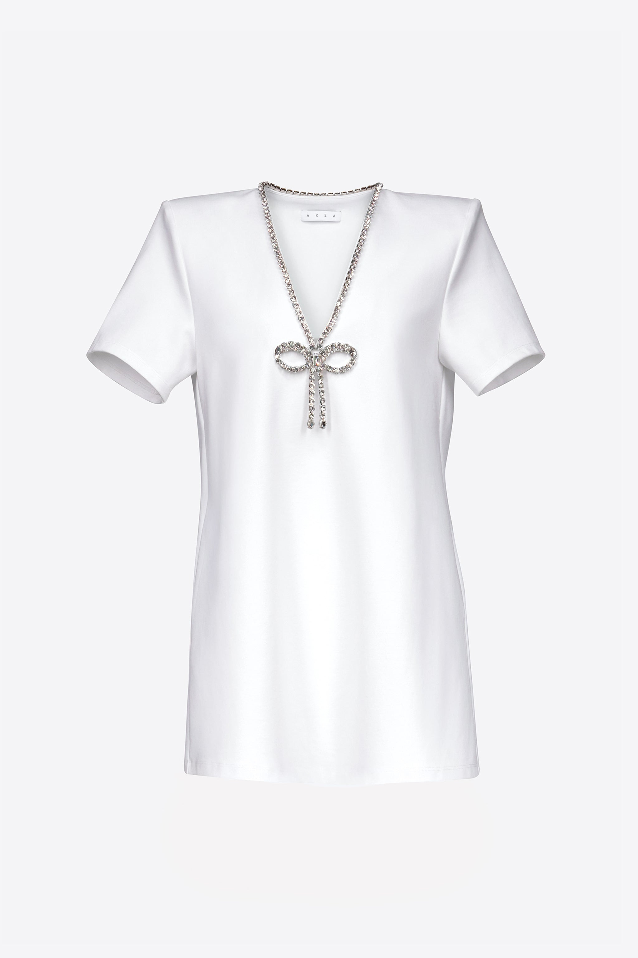 CRYSTAL BOW V-NECK T-SHIRT DRESS