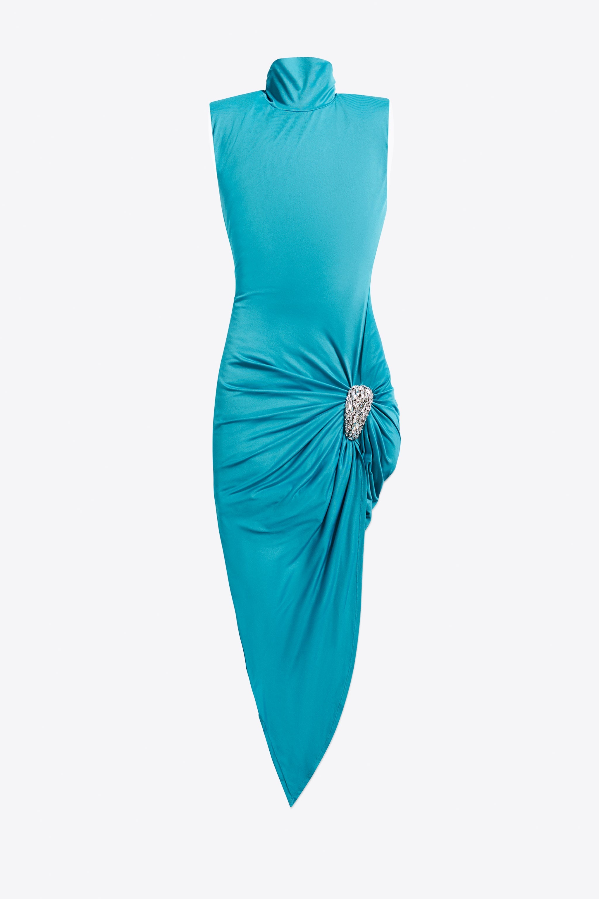 CRYSTAL CLUSTER DRAPED MIDI DRESS