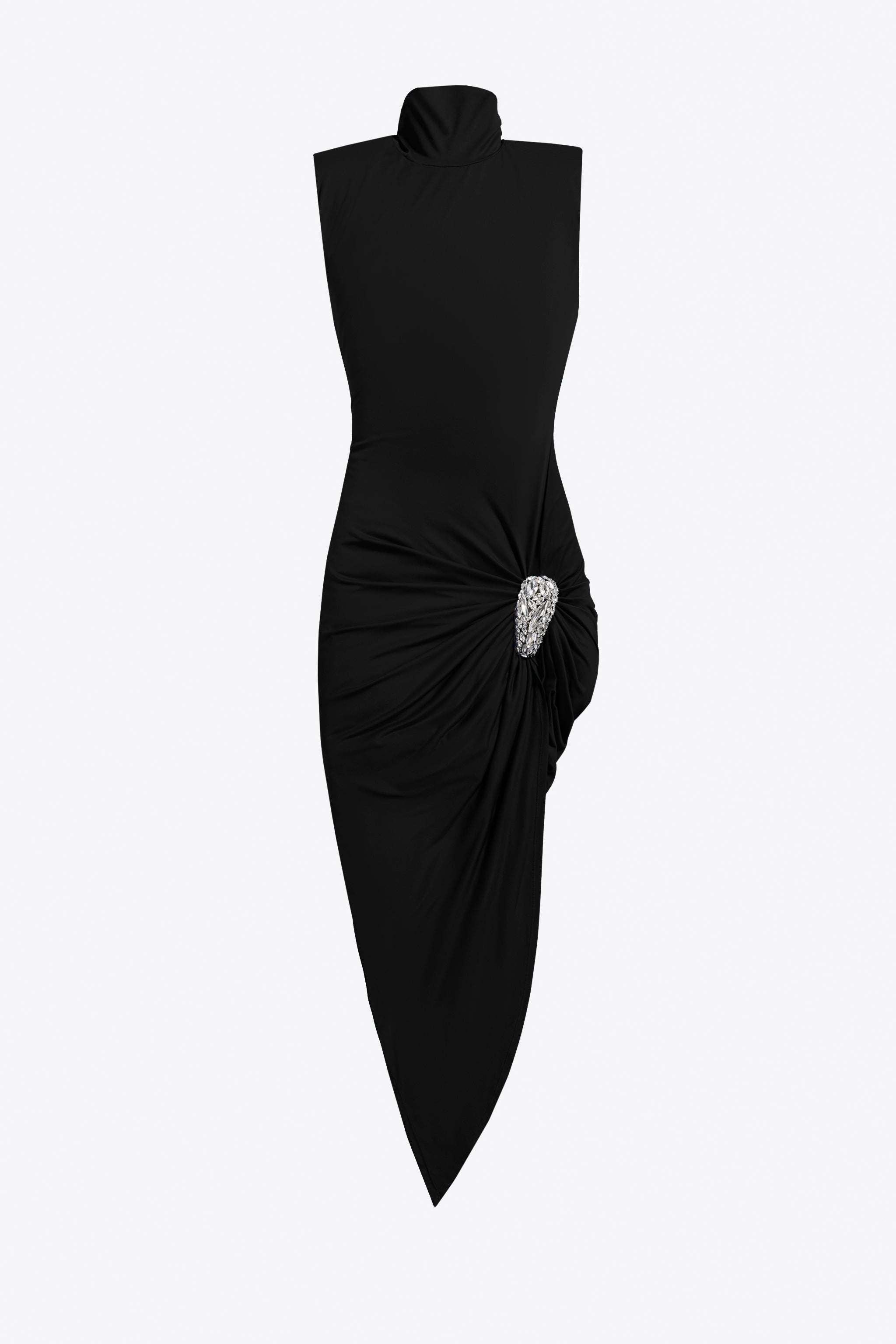 CRYSTAL CLUSTER DRAPED MIDI DRESS