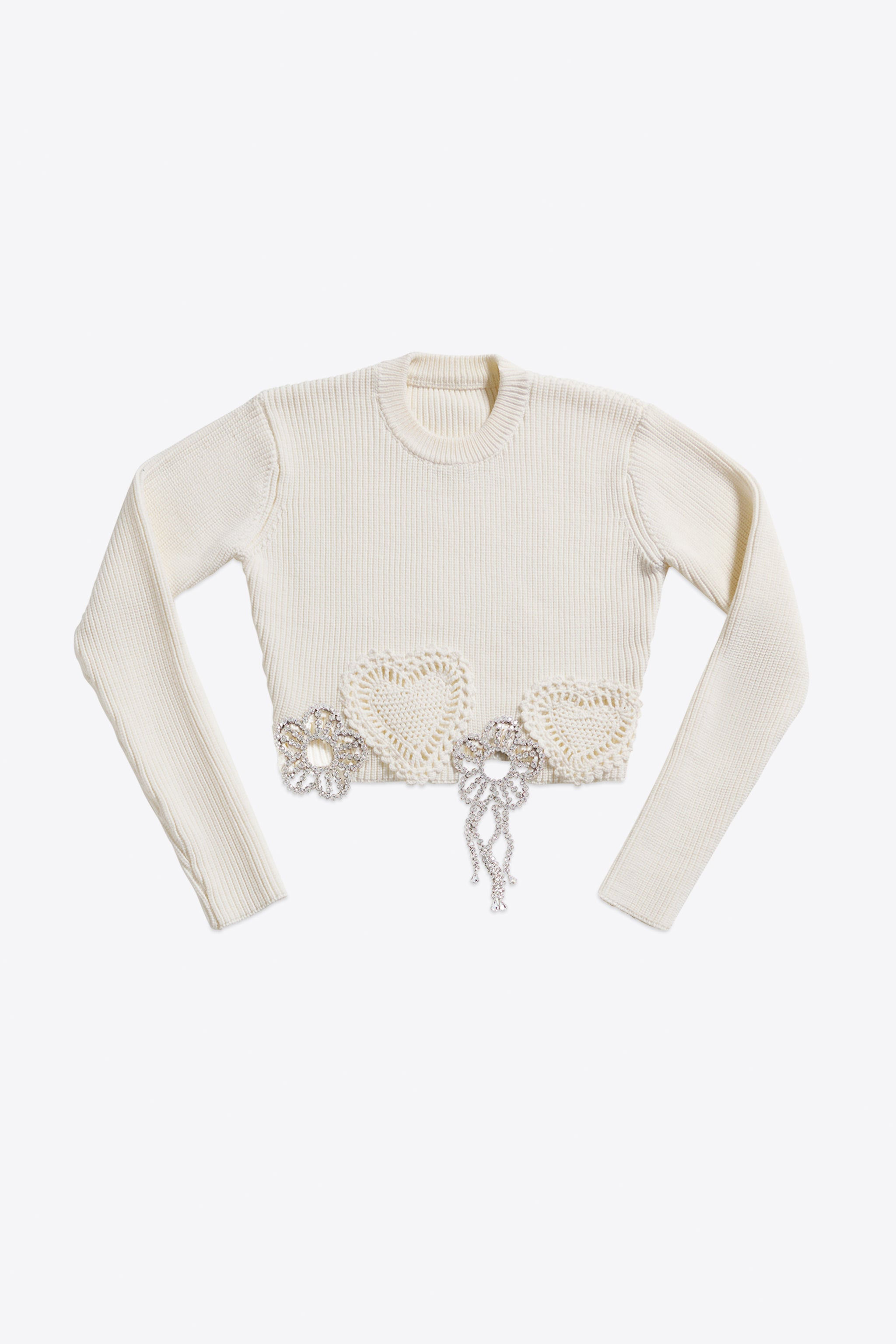CRYSTAL CROCHET FLOWER CROPPED SWEATER