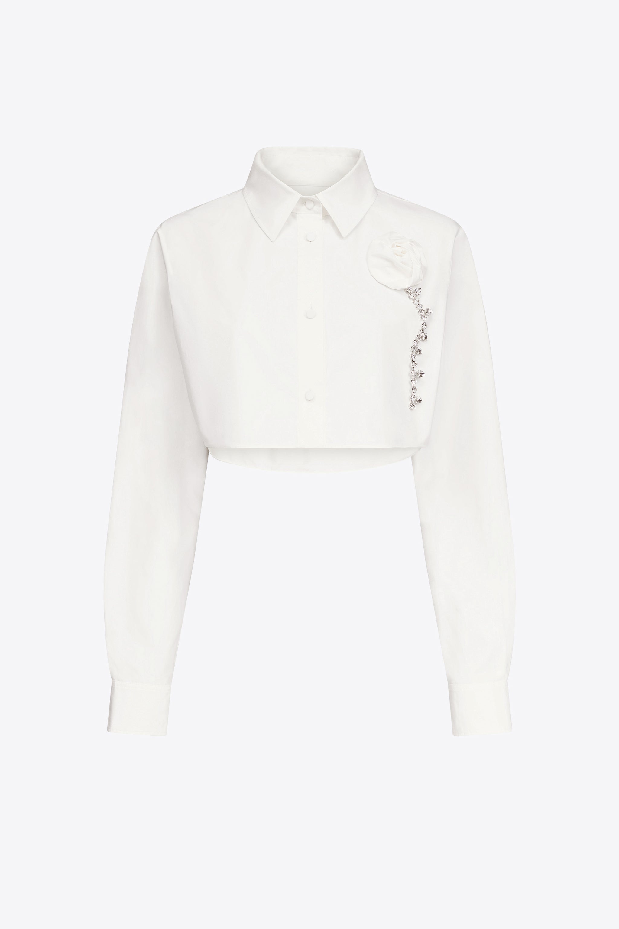 CRYSTAL ROSETTE POPLIN CROPPED SHIRT