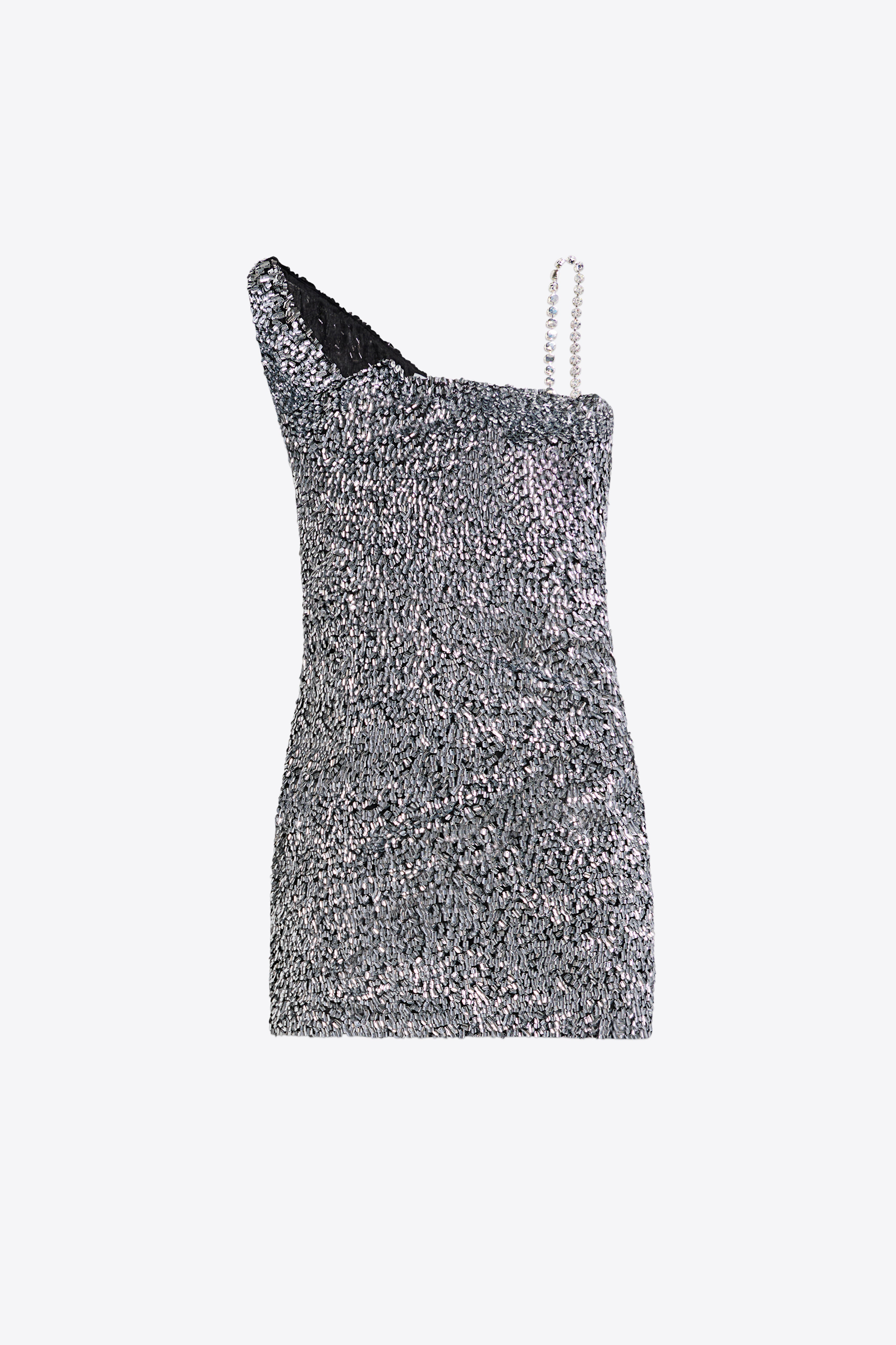 CRYSTAL STRAP SEQUIN MINI DRESS