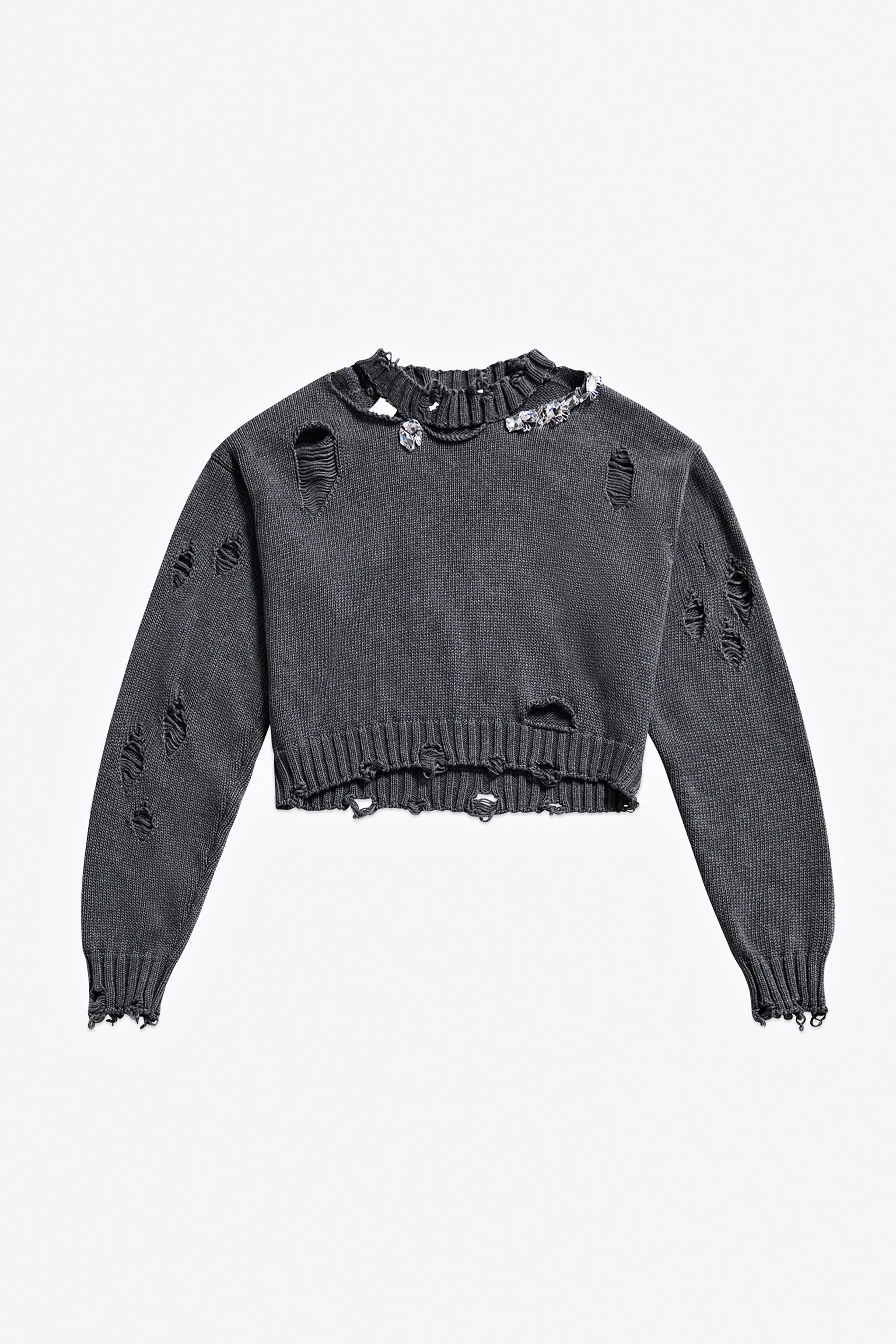 DISTRESSED CRYSTAL CREWNECK SWEATER
