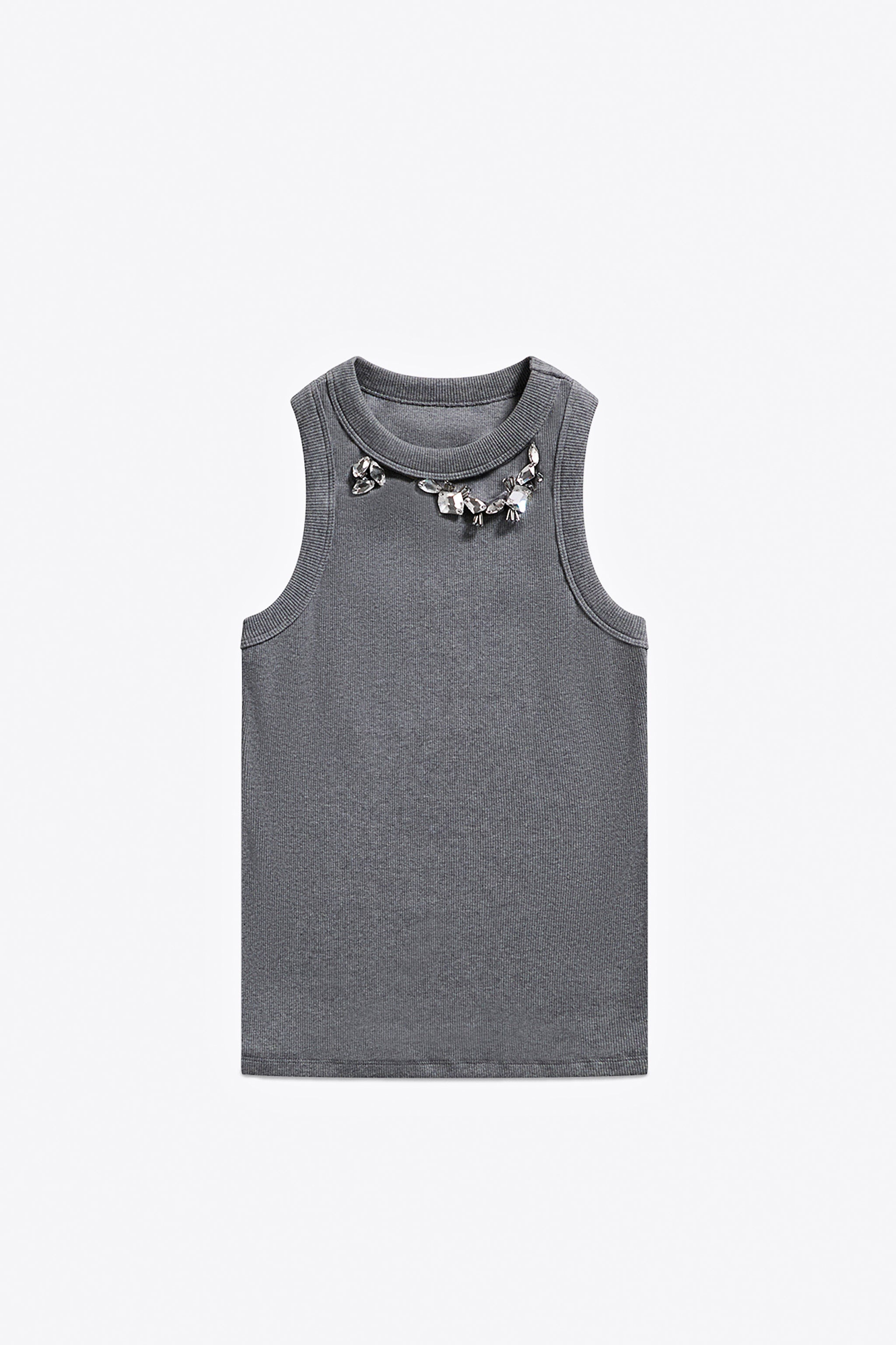 DISTRESSED CRYSTAL RIBBED KNIT TANK TOP