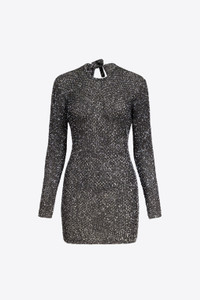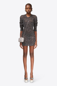 SEQUIN CROCHET LONG SLEEVE MINI DRESS