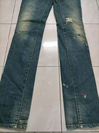 Waist 13.8 Inch Outseam 43 Inch Inseam 34.5 Inch Front Rise 7.5 Inch Thigh 9.5 Inch Knee 7 Inch Leg Open 6.5 Inch Good condition: 7.5/10 POST USING DHL OR FEDEX EXPRESS SHIPPING!!! 3-7 days worldwide (3-4 days as usual) Thank you so much for visit ☺️