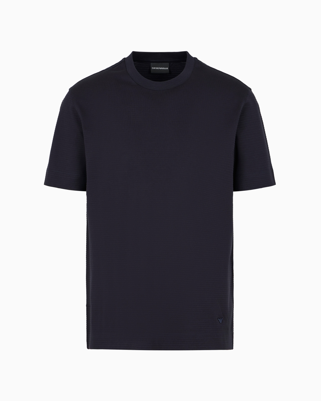 Regular-fit crew-neck pure cotton-jersey crew-neck T-shirt featuring an all-over jacquard pattern that creates an exclusive 3D-effect embossed motif, adding prestige and personality to the style. By choosing this product you are helping to support the Better Cotton Initiative: The BCI uses a tracking system that allows Better Cotton to replace or be blended with conventional cotton. Product Code: 6D1TT71JGYZ10956 Details Composition 100% Cotton Regular fit Jersey Embossed jacquard Crew neck Short sleeves Micro-eagle embroidered at the left hem Fitting Regular fit The model is 188 cm tall and is wearing size 48/M (Italian Size)