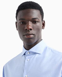 Pure cotton shirt with classic collar. The armure weave creates a two-tone micro-pattern that extends over the entire garment. Sophisticated textures that bring a unique touch to even your wardrobe’s most basic styles. Product Code: EM000192TE109561F9025 Details Composition 100% Cotton Armure weave Classic collar Front buttoning Long sleeves Rounded cuffs Back yoke Fitting The model is 188 cm tall and is wearing size 40