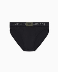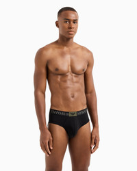 Briefs in certified organic cotton made from organically farmed natural fibres that are cultivated using techniques that meet strict social and environmental criteria. Elasticated waist with logo. Stretch fabric Contrasting logo elasticated waist Product Code: EM000233AF10774UC001
