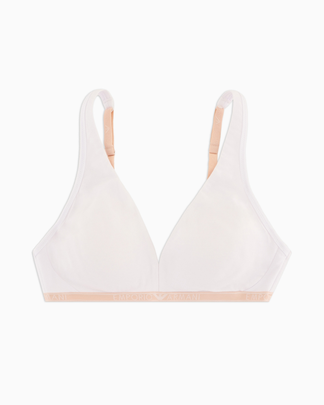 Bralette with adjustable shoulder straps and removable inner cups. Fabric in certified organic cotton made from organically farmed natural fibres grown using techniques that meet strict social and environmental criteria. Product Code: 1645304F223100010 Details Composition 95% Cotton 5% Elastane The fabric is made of 95% organic cotton Bralette Logo band Adjustable shoulder straps Closure hooks Fitting The model is 178 cm tall and is wearing size 40/S (Italian Size)