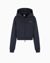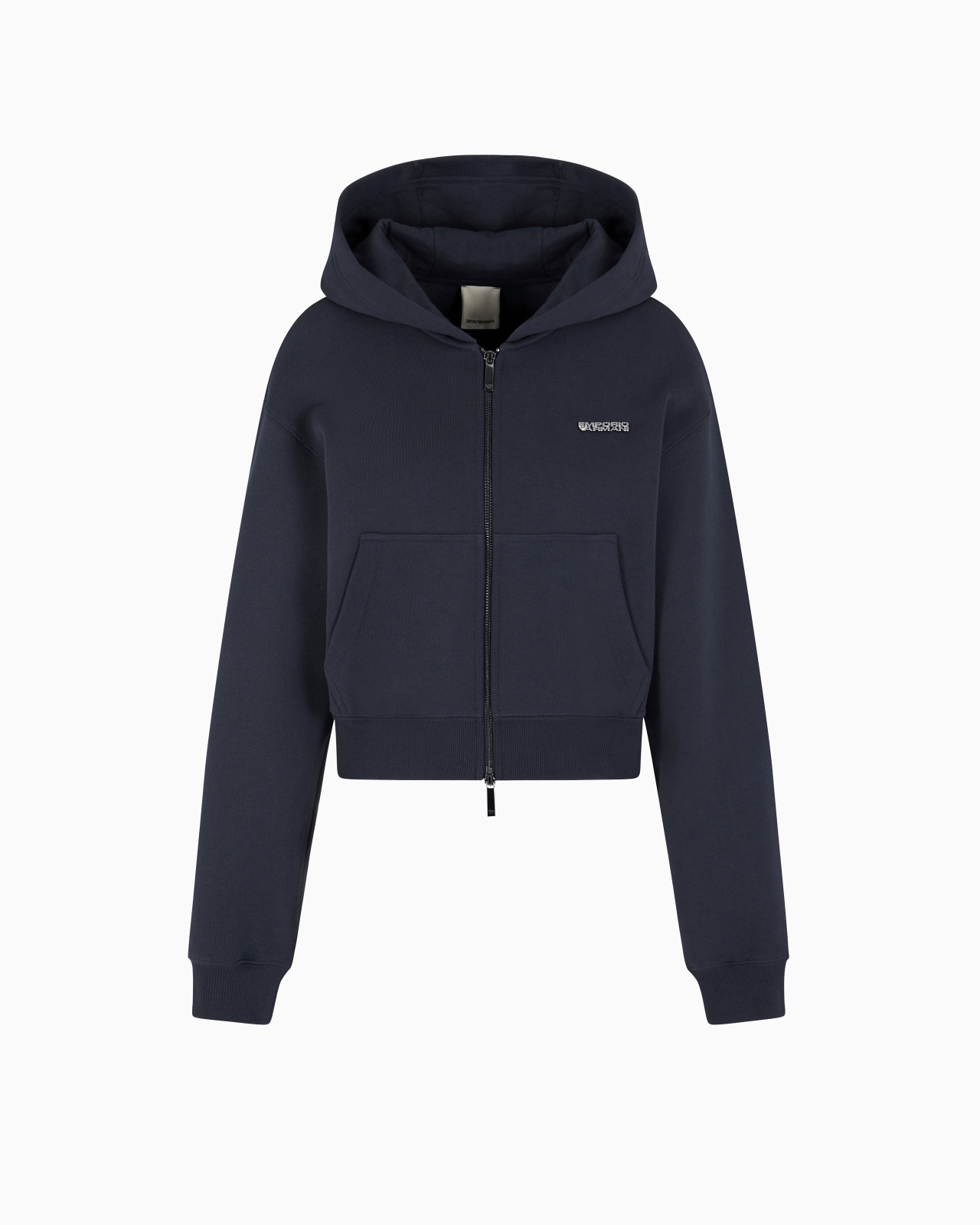 Hooded sweatshirt in pure cotton with zip closure and front pouch pocket. The item is immediately recognisable with the iconic Emporio Armani logo on the chest. This season’s Armani Sustainable Values (ASV) capsule collection draws inspiration from the feeling and profound, universal meaning of PEACE. The keyword that connects the entire collection is expressed in all its forms, enhancing simplicity, harmony and the eternal link between mankind and nature, offering a wardrobe composed of practical, comfortable and highly versatile daywear pieces designed to accompany us seamlessly throughout the day. Smooth, sometimes shiny surfaces merge with floral jacquard motifs and all-over prints depicting the symbol of peace. Fabric: at least 70% organically grown cotton Hood Zip closure Long sleeves Pouch pocket Logo plate on the chest Product Code: EW001377AF12896UB109