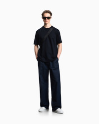 Short-sleeved crew-neck jumper in pure cotton, featuring an all-over op-art motif. The Icon capsule collection is dedicated to the Emporio Armani man and celebrates, season after season, the versatility and timeless elegance of the brand, reworking iconic clothing with a modern twist, in a perfect harmony of tradition and innovation. The FW25 selection is initially defined by fluid and airy silhouettes that play on blue and camel tones, then continues with a focus on exclusive knitwear distinguished by graphic designs and patterns with a strong visual impact. Jersey Jacquard All-over pattern Crew neck Short sleeves Micro eagle embroidery Product Code: EM001896AF19397MB043