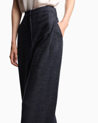 Trousers with darts at the waist that create a sophisticated pleat on the side, made of a compact jersey knit with a classic Prince of Wales check. The garment is part of the Icon capsule collection. Jersey Prince of Wales check motif Closure with zip, hook and back button Darts and side pleat Side pockets Product Code: EW002254AF17461FB033