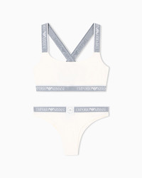 Lingerie set consisting of a bralette with a logo elasticated trim and crossover shoulder straps at the back and matching Brazilian briefs. The fabric is an organic cotton made from organically grown fibres. Fabric: 95% organically grown cotton Two-piece set Bralette with logo elasticated trim Logo elasticated-waist Brazilian briefs Product Code: EW001905AF15345U1054