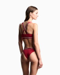 Lingerie set consisting of a bralette with a logo elasticated trim and crossover shoulder straps at the back and matching Brazilian briefs. The fabric is an organic cotton made from organically grown fibres. Fabric: 95% organically grown cotton Two-piece set Bralette with logo elasticated trim Logo elasticated-waist Brazilian briefs Product Code: EW001905AF15345U5075