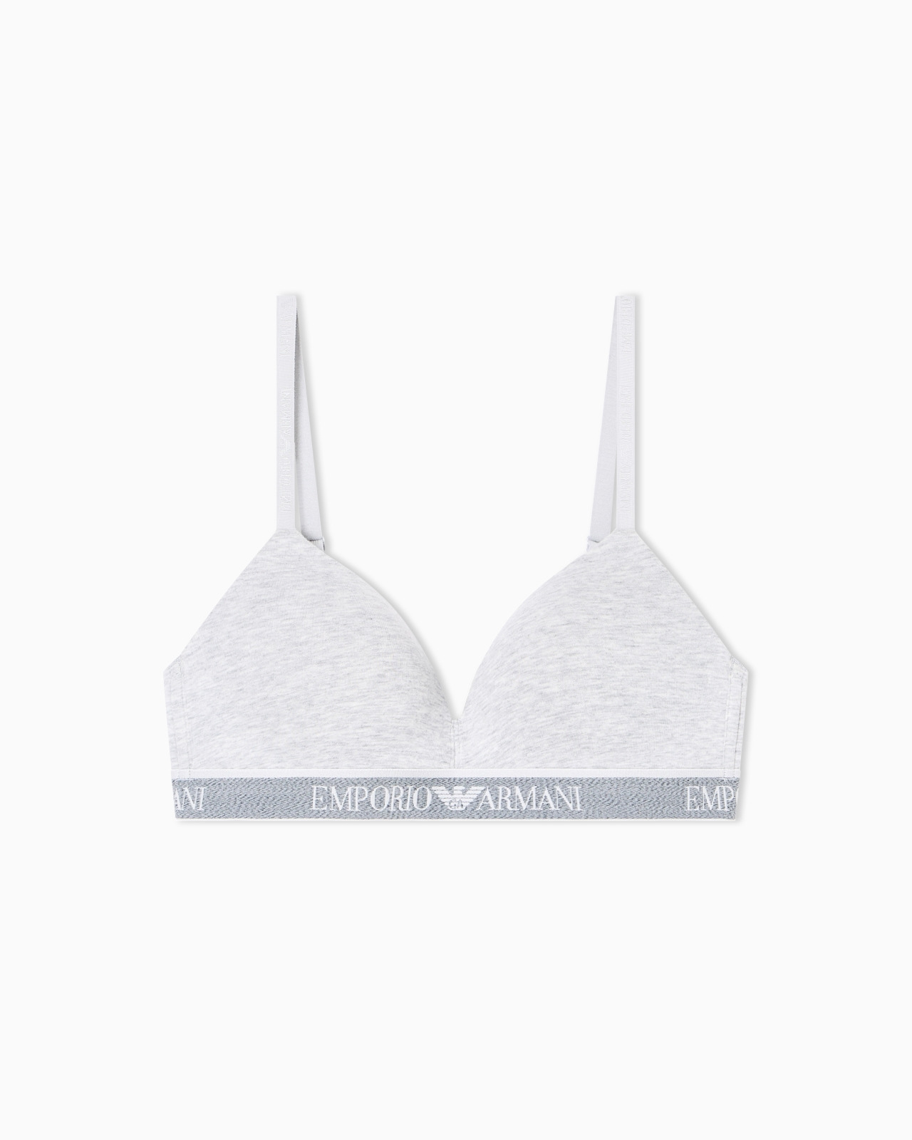 Triangle bra with adjustable shoulder straps and elasticated logo trim. The fabric is an organic cotton made from organically grown fibres. Fabric: 95% organically grown cotton Padded triangle Adjustable shoulder straps Elasticated logo trim Closure hooks Product Code: EW000442AF15345O8002
